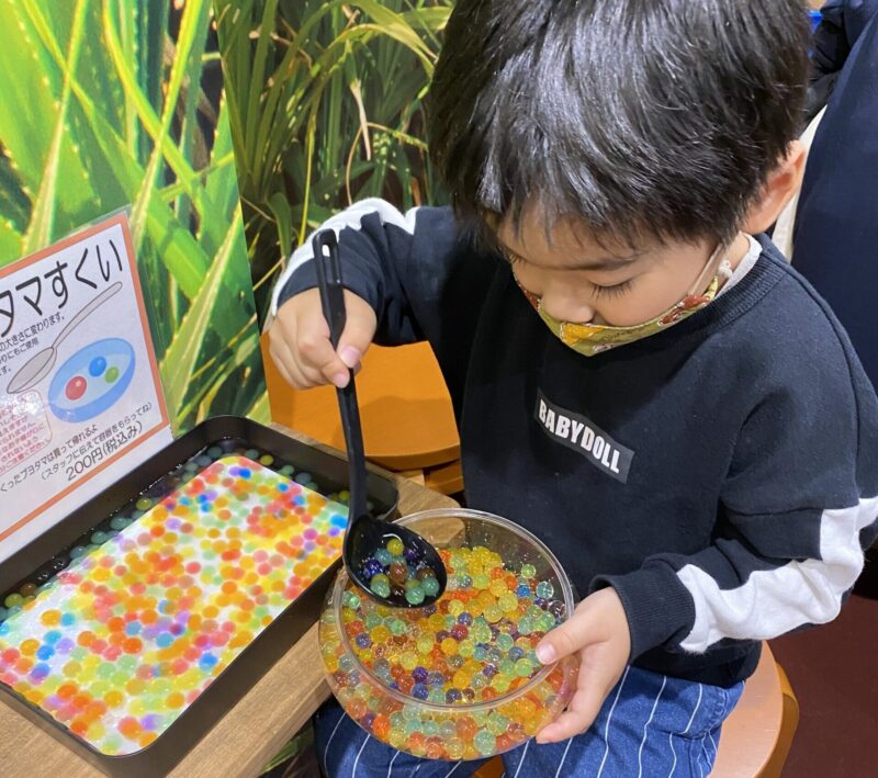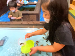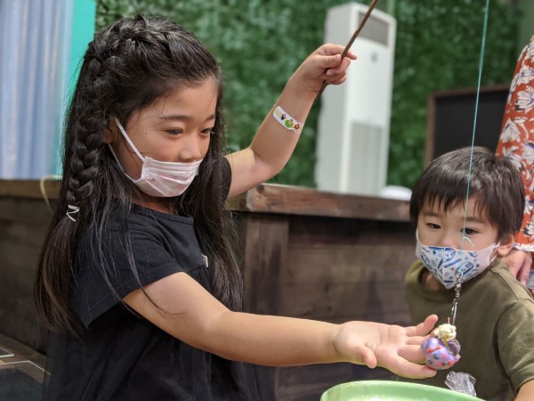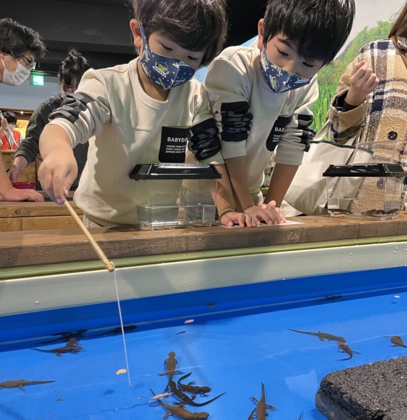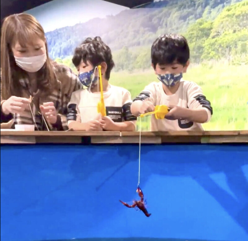 やどかり釣り・イモリ釣り・ザリガニ釣り・金魚すくいなどは釣り針を使わないため小さなお子さまでも安心。