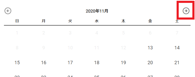 予約サイトの日付選択画面で「>」を押すと月を変更できます。