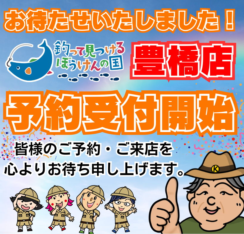 3月11日(水)オープンの「釣って見つけるぼうけんの国 豊橋店」につきまして、本日予約受け付けを開始させて頂きました!